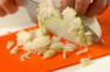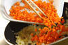 フライパンにバターを中火で熱し、ニンニク、玉ネギを炒める。玉ネギに少し色がついてきたら、時々混ぜながら弱めの中火で8~10分位炒める。