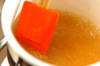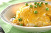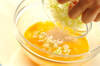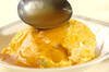 中華鍋にサラダ油大さじ1.5を強火で熱し、合わせた卵液を流し入れて大きく手早く混ぜ、半熟状になったら、卵の周囲を少し内側へ折り曲げ、丸く形を整える。ひっくり返し、薄く焼き色をつける。同様にもう一つ作る。