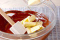 チョコレートは湯煎で溶かしておく。そこへ、柔らかくしたバターを加え、混ぜる。