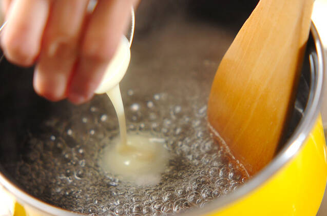 水に粉寒天を加えて煮溶かし、よく混ぜながら沸騰状態で1分程度煮る。砂糖、練乳を加えて煮溶かし、火を止める。
