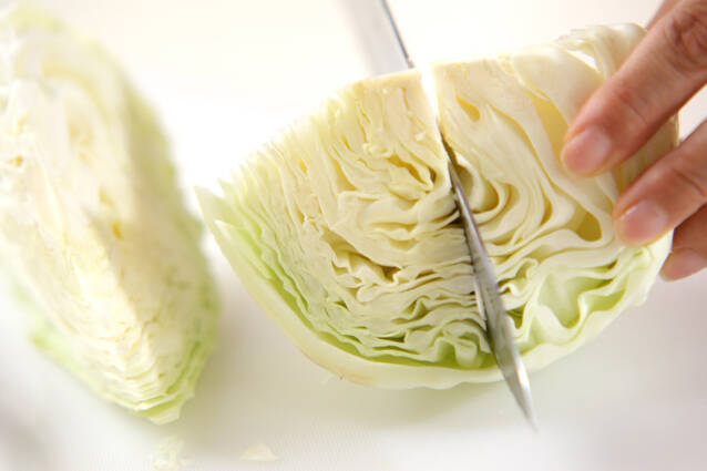 キャベツはザク切りにする。