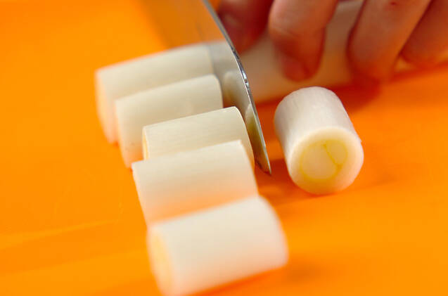 白ネギは長さ3cmに切る。