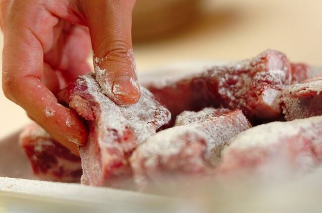 豚バラ肉は塩コショウを振り小麦粉を薄くつける。