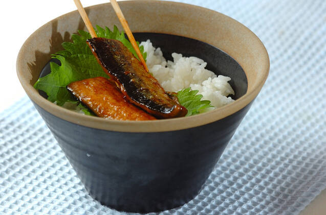 ご飯をよそった丼に大葉をしき、(2)のサンマの蒲焼きをのせる。刻みのりをのせ、お好みで粉山椒を振る。
