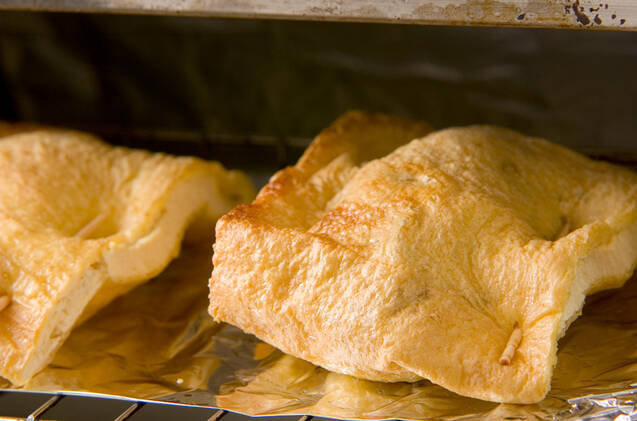 オーブントースター等で約5分焼き、油揚げに焦げ目がついたら出来上がり。好みでしょうゆをたらしてどうぞ。