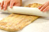 溶き卵適量をぬり、スライスアーモンドを細かく砕きながら散らす。200℃に予熱しておいたオーブンで10~15分焼く。
