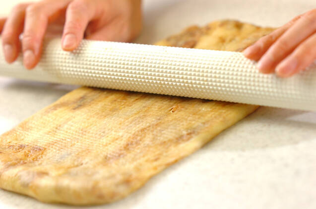 成形する。とじ目を下にして麺棒で12cm×24cmになるようにのばす。