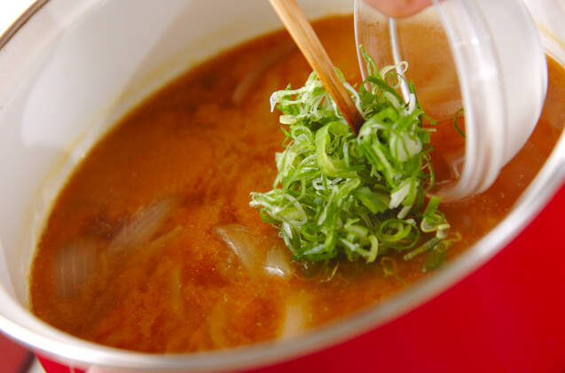 みそを溶き入れて刻みネギを加え、ひと混ぜして器によそう。