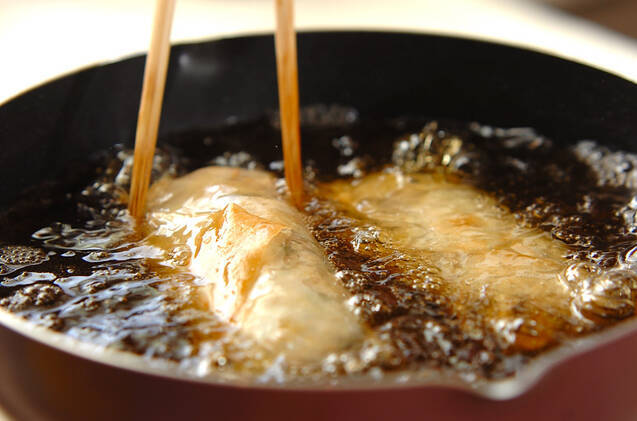 160℃の揚げ油で色よく揚げ、器にサラダ菜、プチトマト、ブロッコリーと盛り合わせる。お好みで分量外のからしじょうゆをつけてもいいですね。