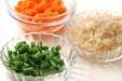 玉ネギは細かめのみじん切りにし、フライパンに分量外のサラダ油少々を熱して炒め、冷ましておく。