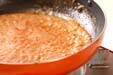 弱火にし、蓋をして7~8分蒸し焼きにする。ハンバーグの中央に竹串を刺し、澄んだ汁が出てきたらOK!ハンバーグはいったん取り出しておく。(濁った赤い汁なら、もう一度蓋をして焼く)
