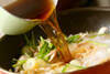 中華鍋にサラダ油を中火で熱し、ショウガ、豆板醤を炒める。香りが立てば豚ひき肉を加え、強火でポロポロになるまで炒め合わせる。