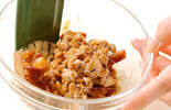 <豚納豆>を作る。豚薄切り肉は4cmの長さに切る。フライパンにサラダ油を熱し豚肉を炒め<調味料>を加え汁気がなくなるまで炒める。納豆、ツナ缶、しょうゆ、練りからし、マヨネーズ、コショウを混ぜ合わせる。サニーレタスは水洗いし水気を拭き取り食べやすい大きさに切る。