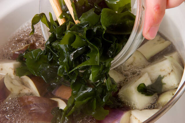 再び煮立てば火を止め、ワカメ、刻みネギを加えてひと混ぜし、お椀によそう。