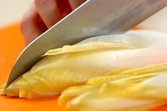 チコリは縦4等分に切る。ボウルに<衣>の材料を混ぜる。
