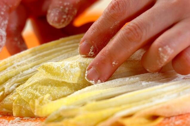 揚げ油を170℃に予熱し、チコリに薄く小麦粉をからめる。