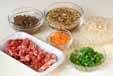 ゴボウはたわしできれいに水洗いし、みじん切りにして水に放つ。