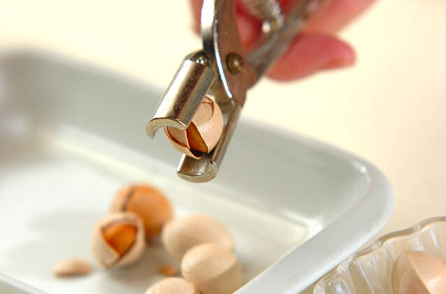 ギンナンはペンチなどではさみ、または包丁の背で軽く叩き、殻を少し割る。