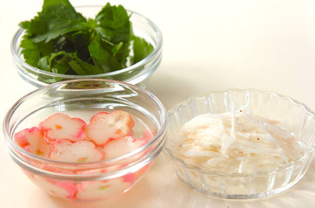 長芋は皮をむいて縦薄切りにし、更に素麺状に細切りにする。スライサーを使うと便利です。