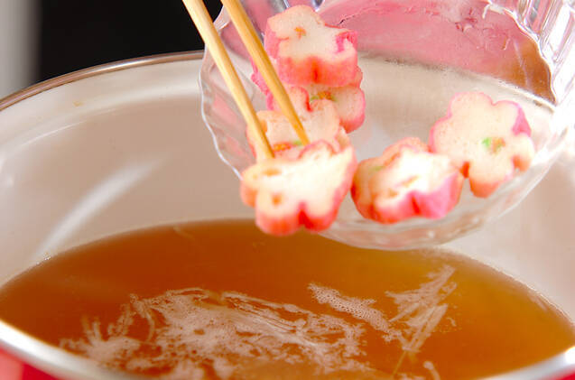 鍋にだし汁、<調味料>を合わせて火にかける。煮立ったら長芋、花麩を加え、ひと煮立ちさせる。