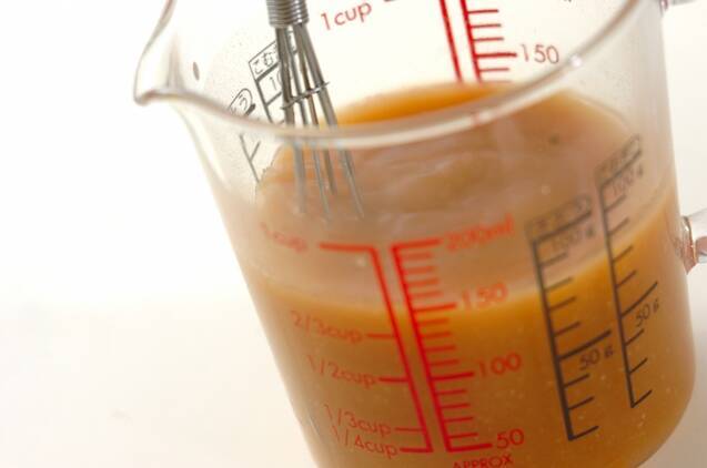 <調味料>と<水溶き片栗>の材料をそれぞれ混ぜ合わせる。