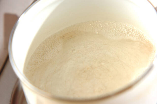 鍋に水200ml、粉寒天を入れ、よく混ぜて強火にかける。煮たったら砂糖を加え、砂糖が溶けたら少し火を弱め、煮たてた状態で1分煮る。