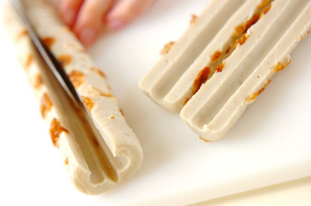 ちくわは縦半分に切る。