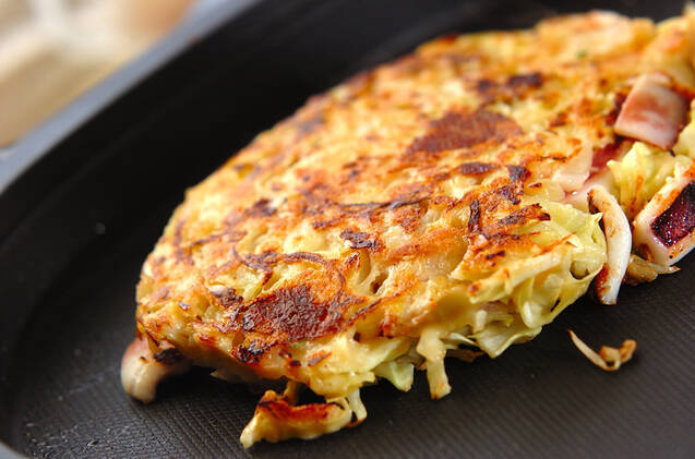 小麦粉で!ふわふわ簡単基本のお好み焼き(豚玉) 長芋とキャベツたっぷり