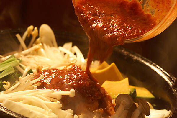 全体に残りの<タッカルビのタレ>を回しかけ、焼きながらいただきます。こげそうな場合は<スープ>を少しずつ加えて下さい。食べ終わりかけた鍋にご飯を入れ焼飯にしたり、うどんを加えてもいいですね!