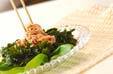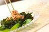 モロヘイヤと鶏ささ身のゴマ和え ワカメスープ