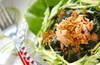 器にサラダ菜を敷いてワカメを盛り、中央にツナをのせ、周りにキュウリを散らす。