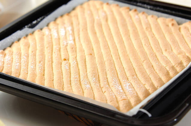 190℃に予熱しておいたオーブンで約10分焼く。焼けたら天板から外し、ケーキクーラーの上で冷ます。