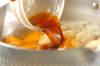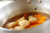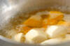 鍋にだし汁、カボチャ、里芋を入れて火にかけ、煮たったら落とし蓋をして中火で10分煮る。