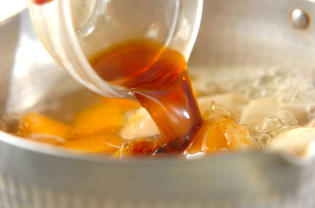 <調味料>の材料を加え、落とし蓋をしてさらに10分煮る。