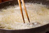 最後に強火にし、カリッと仕上げ、熱々を<合わせ漬けダレ>につける。タレが全体にからまるように時々返して10分以上漬ける。