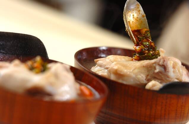 味をみて、薄ければ分量外の塩で味を調えて器によそい、<ネギの辛み和え>をのせる。