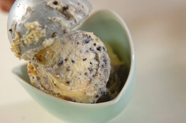 ラップをして冷凍庫に入れ、再びかたまったらすくって器に盛り、ミントの葉を飾る。