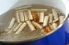 ゴボウはたわしできれいに水洗いし、3~4cmの棒状に切って水に放つ。
