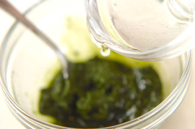 抹茶は水を加えながら練る。<シロップ>の材料を耐熱容器に入れて電子レンジにかけ(600Wで約1分)砂糖を煮溶かして冷やし、練った抹茶と混ぜ合わせる。ダマになった場合は網を通す。