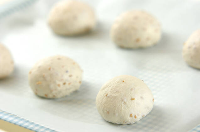 ガス抜きをして6分割にし、丸め直してベンチタイム5分。