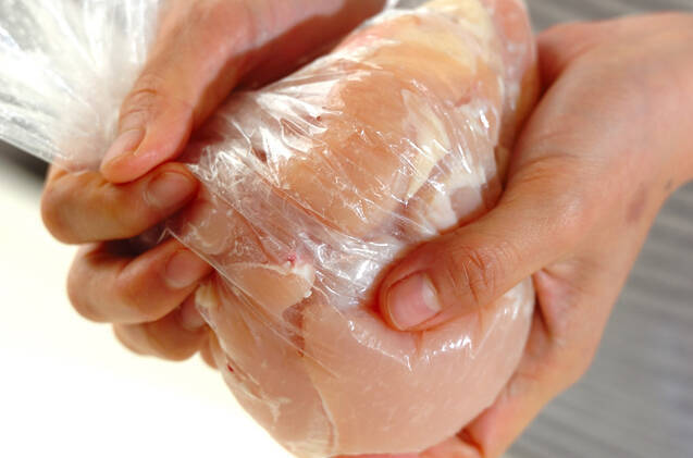 鶏むね肉は身の厚い部分に包丁で刺して厚みを均等にし、大きめのひとくち大に切る。塩麹、ショウガ汁をもみ込み、半日以上置く。
