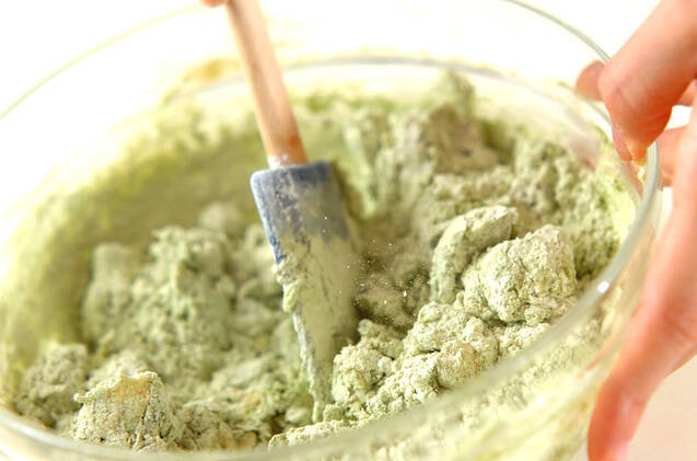 合わせた粉類を加え、泡立て器からゴムベラに変えてサックリ混ぜ合わせる。