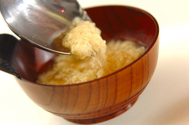 ふんわりと浮いてきたら火を止め、器に注いで刻みネギを散らす。