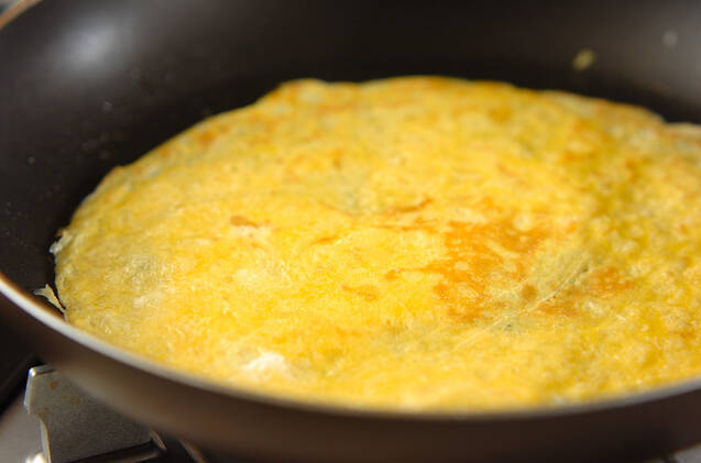 卵は割りほぐし、フライパンに薄くサラダ油をひいて中火にかけ、卵液を流し入れて全体に広げ、両面焼く(薄焼き卵)。粗熱が取れたら、キュウリに合わせて細切りにする。