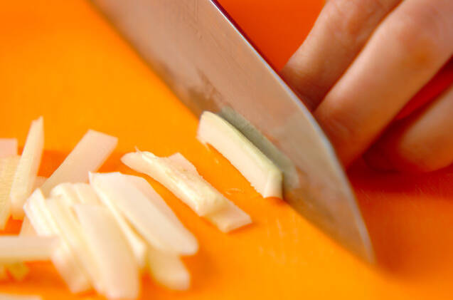 セロリは筋を引き、糸寒天の細さに合わせる。