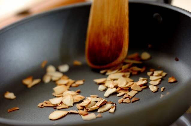 スライスアーモンドはフライパンに入れ、色よく煎って取り出す。