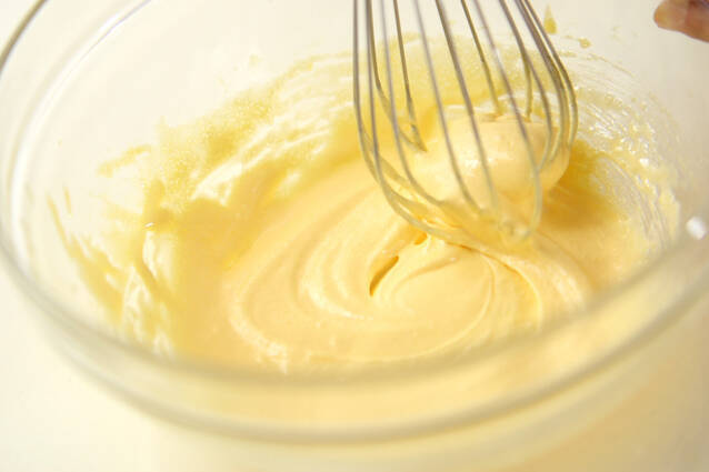 ボウルに卵黄とグラニュー糖を入れ、白っぽくなるまでよく混ぜる。