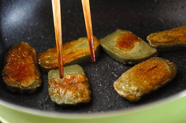 フライパンにサラダ油大さじ1/2を熱し、生麩を並べ入れる。途中で返し、全体に薄い焼き色がついたらいったん取り出す。