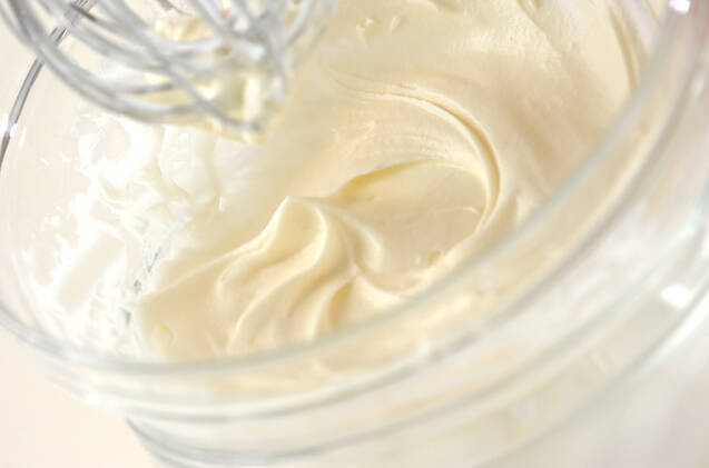 クリームチーズは常温にもどしておく。ボウルに生クリームと砂糖、ハチミツを加え、ボウルの底を氷水につけて冷やしながら、泡立て器でツンと角が立つくらいまでホイップする。クリームチーズ、レモン汁を混ぜ合わせる。