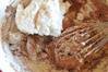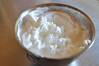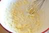 大きめのボウルに無塩バターと砂糖を入れ、泡立て器で白っぽくなるまでよく混ぜ合わせる。